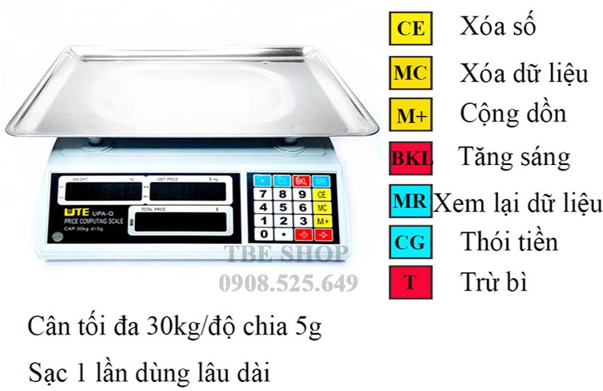 Bước 3: Ý nghĩa của các phím trên cân ( ví dụ là cân tính tiền UTE )